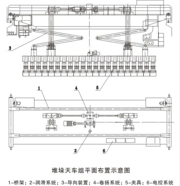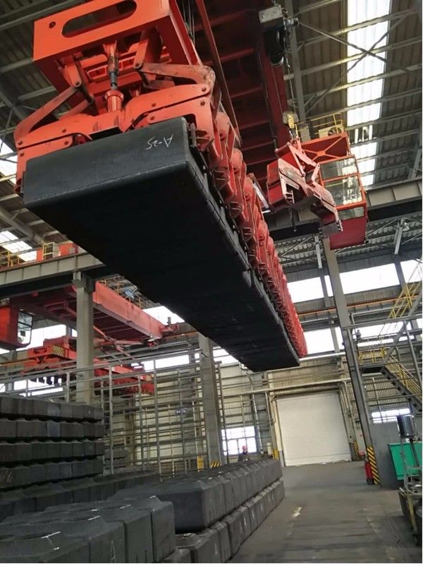本產(chǎn)品通過(guò)自動(dòng)夾鉗,每次可夾取21塊陽(yáng)極碳?jí)K,***高可堆成8層。橋架下面裝有工字鋼,工字鋼上裝有5t電動(dòng)葫蘆,該葫蘆沿工字鋼運(yùn)行,可通過(guò)單塊自動(dòng)碳?jí)K夾鉗夾取碳?jí)K,還可在車(chē)間吊運(yùn)零星雜物。運(yùn)行和起升全部采用變頻調(diào)速,全部操作均可在操縱室內(nèi)完成。采用機(jī)械重力式自動(dòng)夾取代替氣動(dòng)方式夾取碳?jí)K,為制造廠(chǎng)和用戶(hù)大大節(jié)約了成本。